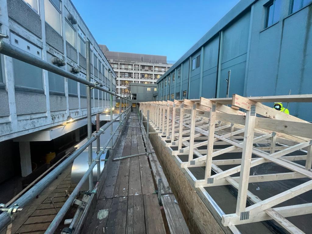 Watford General Hospital required a bespoke 250sqm2 link to act as a hospital street, connecting patients and staff from the existing hospital to a new 20 bed ward.
